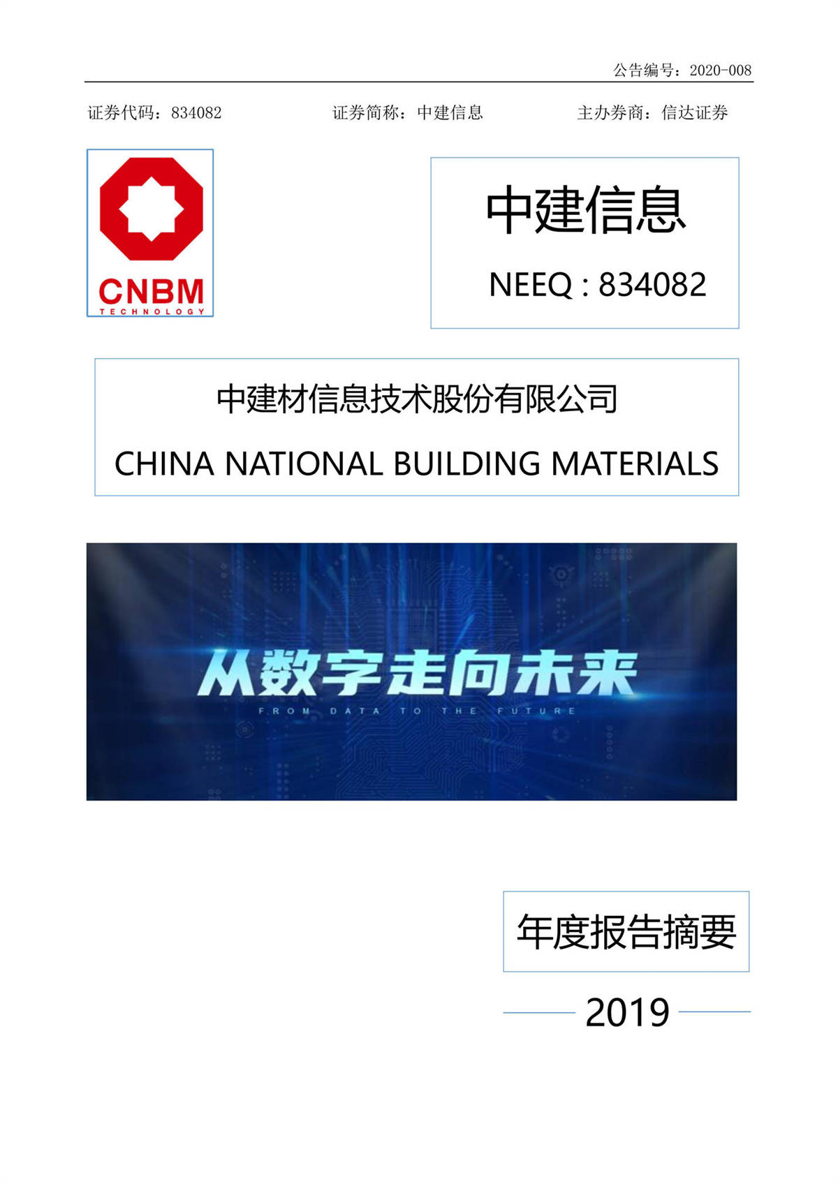 中建信息2019年年度報告摘要